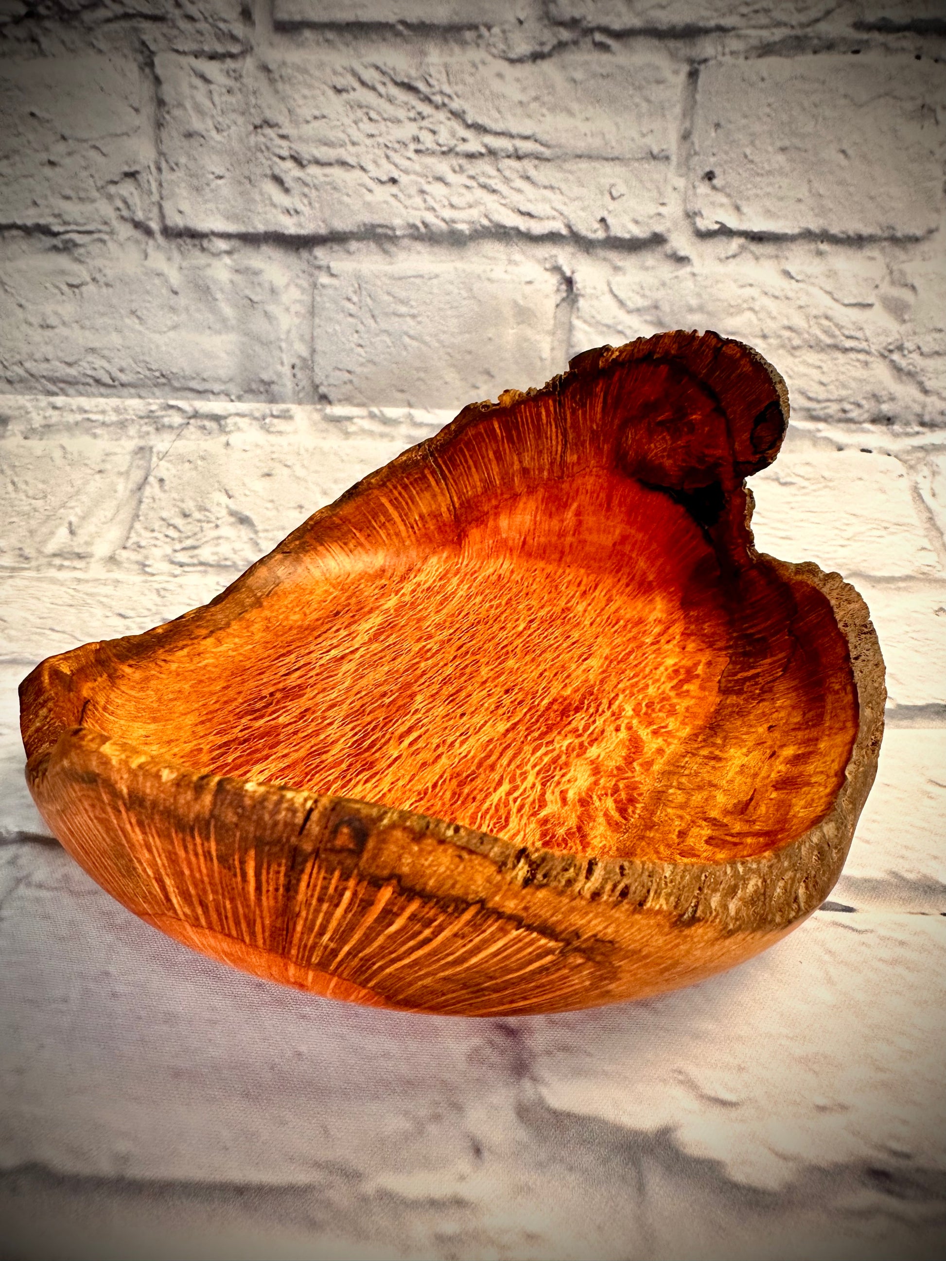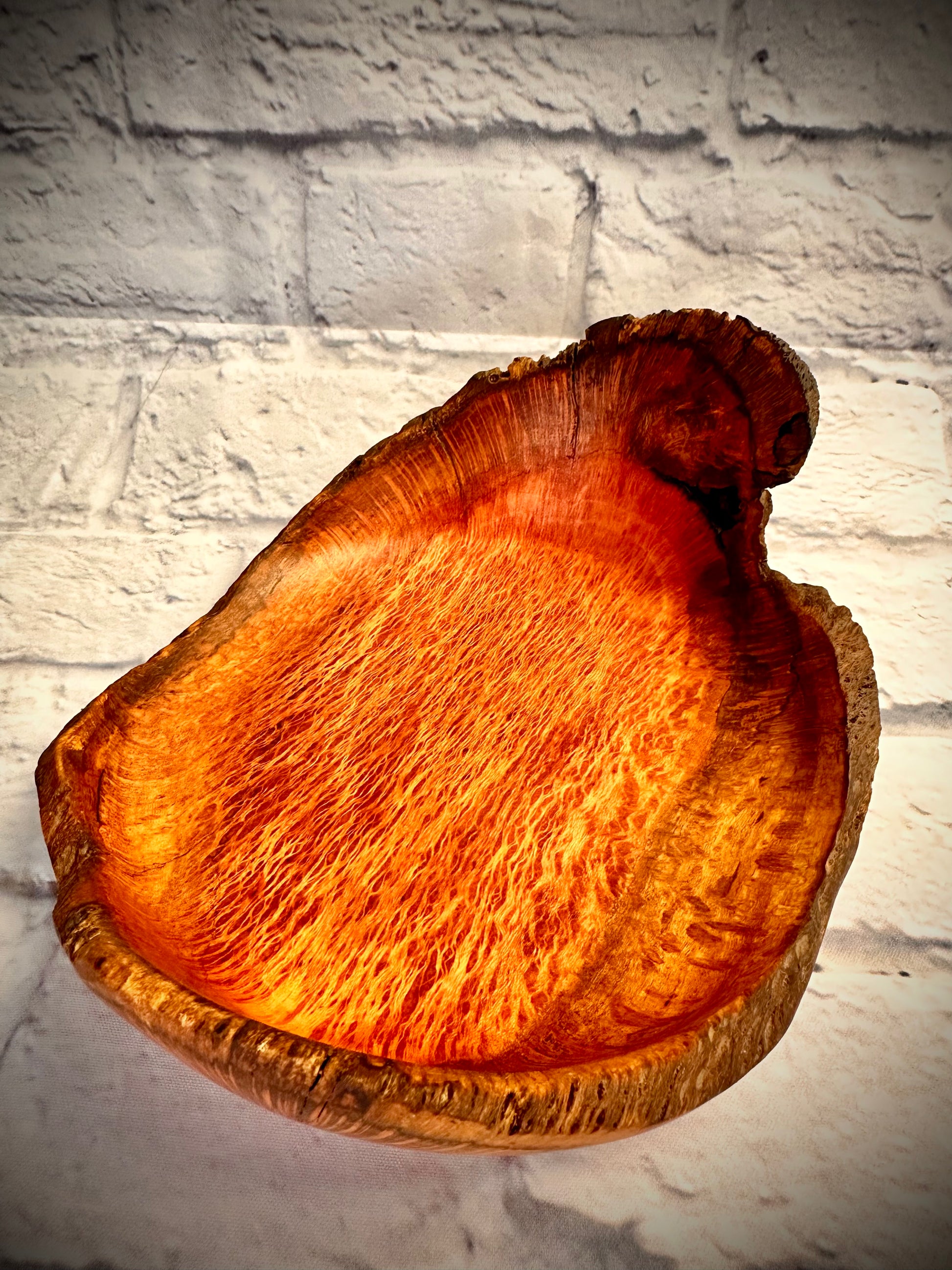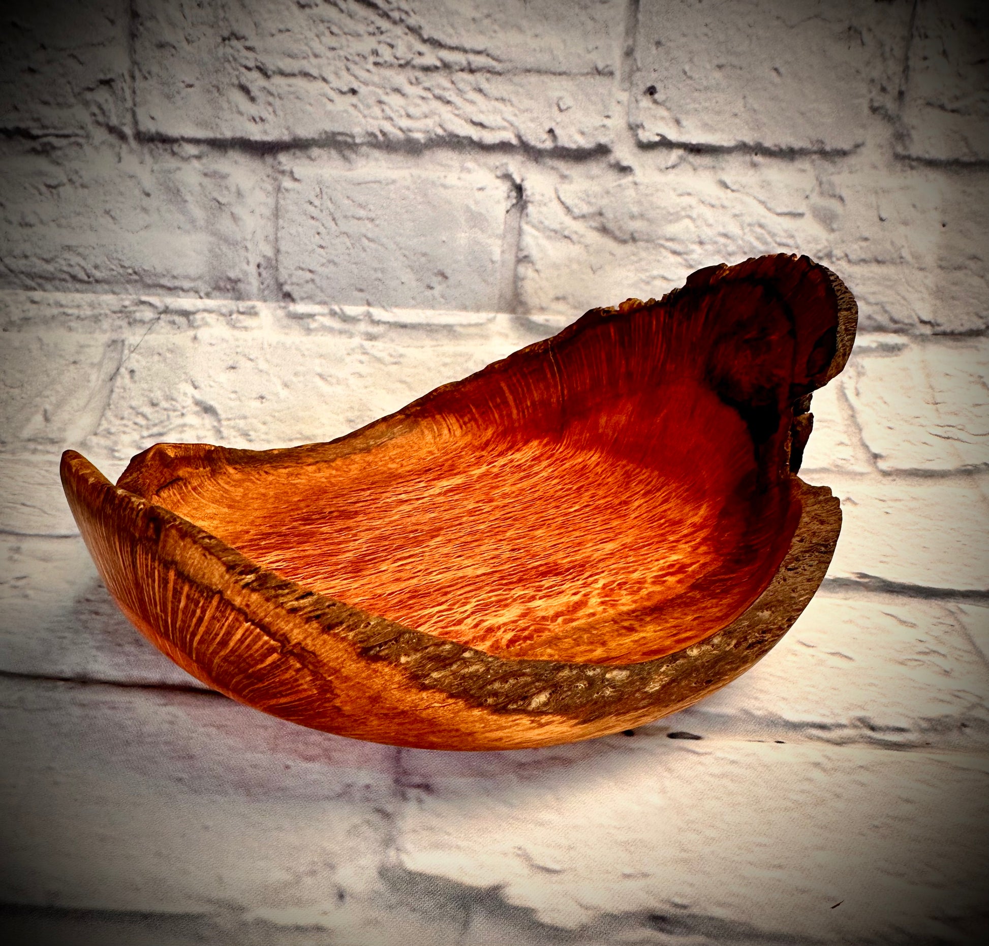 Stunning pink Western Australian Sheoak natural edge winged bowl, crafted to showcase the rich, warm tones and flowing grain patterns unique to this remarkable timber. The natural edge and winged design create a dynamic and artistic silhouette, making this piece a true work of art. The interplay of sapwood and heartwood adds depth and character, ensuring no two bowls are ever the same. Finished with a hand-applied blend of beeswax and mineral oil, it exudes a silky sheen that enhances its natural beauty. Perfect as a decorative bowl or an eye-catching centrepiece, this timeless creation brings a touch of elegance to any space.